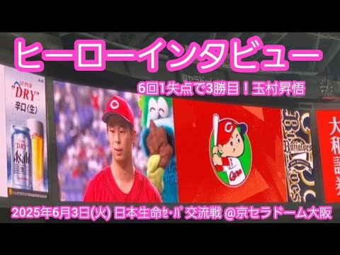 20250603【現地】交流戦開幕白星!玉村昇悟のヒーローインタビュー withスラィリー 広島東洋カープ@京セラドーム大阪・レフト外野下段 日本生命セ・パ交流戦