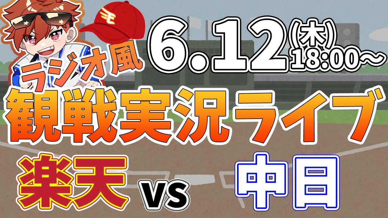 楽天イーグルス VS 中日ドラゴンズ 6/12【ラジオ実況風同時観戦視聴配信ライブ】