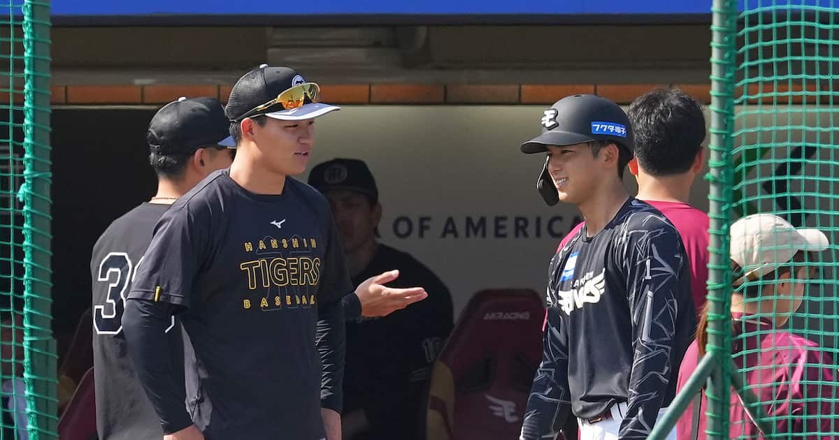 阪神、楽天選手との再会喜ぶ 加治屋や宗山と交流  サンスポ楽天・加治屋が古巣斬りで16試合連続無失点 阪神ファンとの“再会”に「当てるわけには…」と本音もポロリ(デイリースポーツ)  Yahoo!ニュース阪神 ヘルナンデスの声出しに中野らナインの表情緩む 3連敗中の暗いムードはなし  dメニューニュース【阪神】パ・リーグ本拠地ラストカードも野手の合流なし 前川右京は2軍で一塁ノック受ける  nikkansports.com【阪神】ナインが楽天加冶屋蓮との再会に笑顔 試合前の一塁ベンチ前で談笑  スポーツブル
