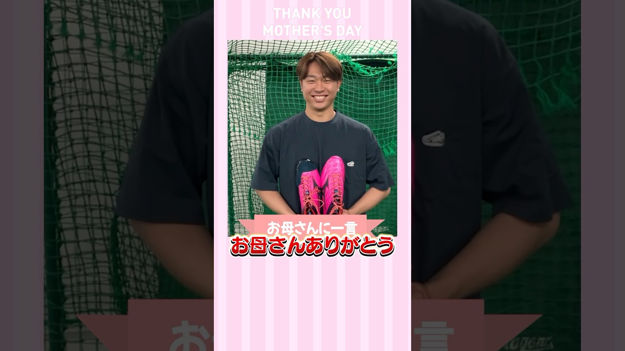 [音楽] 1年前か2 年前に母の日でちょうど登板する機会があったので それは 僕の中ではいい思い出ですピンクのアイテムをつけられるのは母の日しかないので自分も登板が重なれば嬉しいですけどこういうのはいただけるのはすごく嬉しいです [音楽] やっぱりここまで育ててくれた母親には 感謝したいなと思いますしこっからまた 結果を出し続けることで恩返しになると 思うのでしっかりとしてお返しできるよう に頑張りたいなと思いますさんありがとう