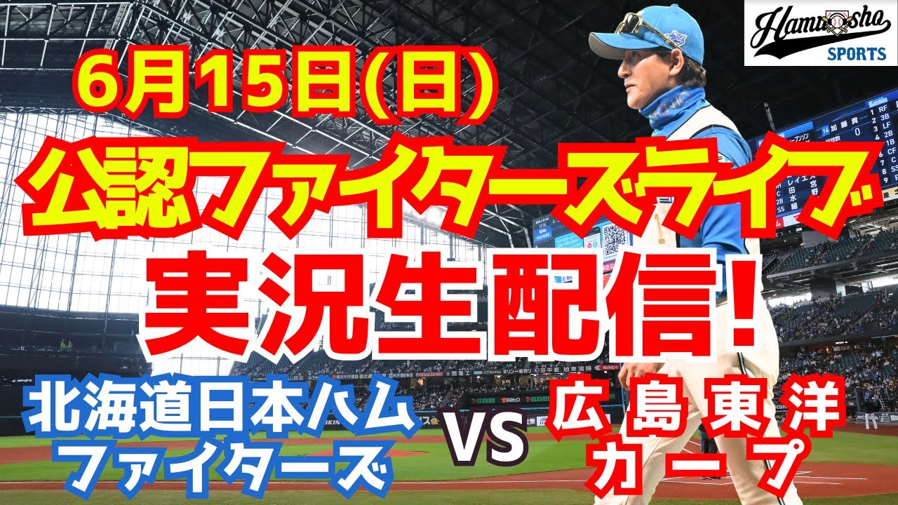 日ハム 日本ハムファイターズ 2025年6月15日 北海道日本ハムファイターズ対広島東洋カープ戦を実況生配信でお送りします。