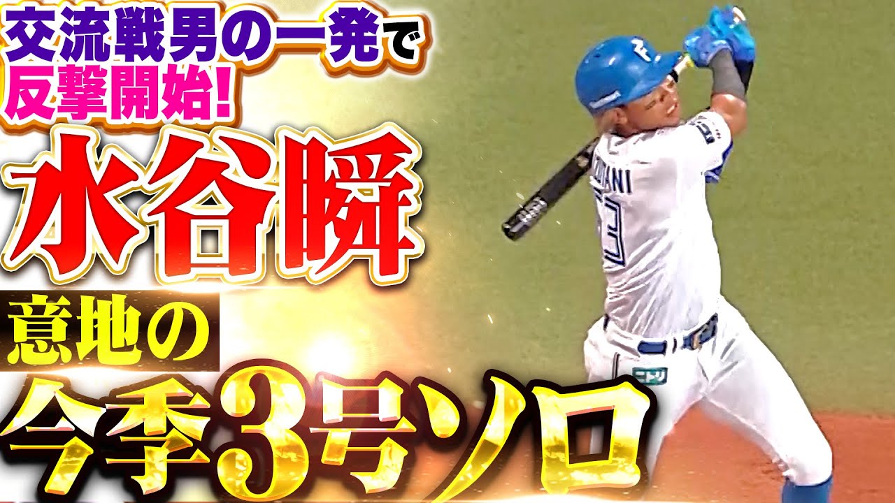 6回裏、高々と打ち上げた打球が意外に伸び、バックスクリーンへのホームラン!! やはり交流戦男…北海道日本ハム・水谷瞬が3号ホームランを放って反撃の一振り。意地の一撃で流れを変えた!!