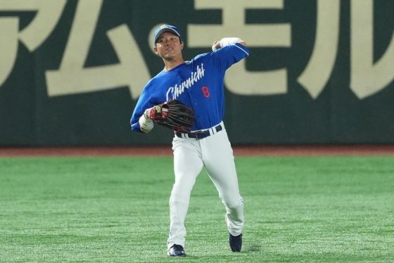 2点をリードされた5回無死一塁、牧野翔矢捕手が高橋宏斗投手の直球を弾き返した。左中間を破れば長打コースとなる当たりだったが、大島はスライディングして捕球。ゴールデン・グラブ賞9回を誇るベテランの美技に、敵地も歓声に包まれた。