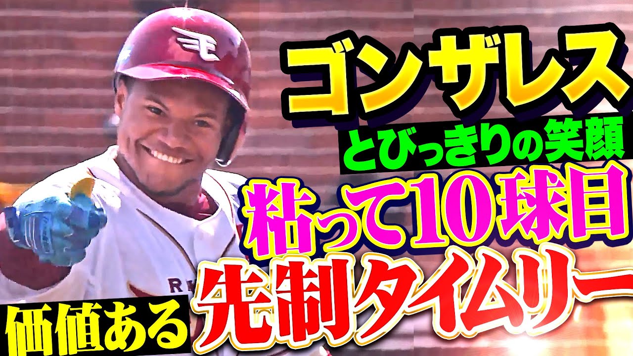 0対0で迎えた4回裏、粘って10球目を逆方向にはじき返し、先制タイムリー!! 東北楽天・ゴンザレスが価値ある一打を放ち、塁上でニッコニコ。かわいい。パワーあり、技術あり。新加入のゴンザレスの存在が大きすぎる…!!