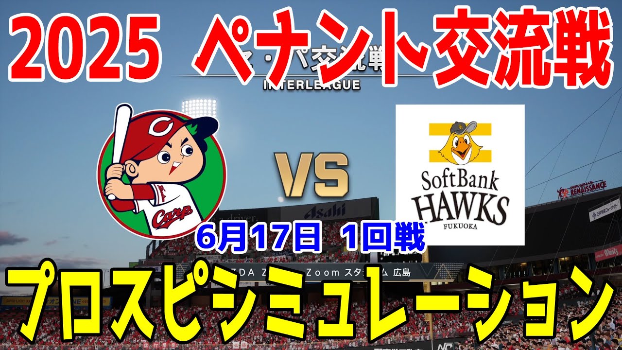 【2025年ペナント交流戦/プロスピ2025】広島東洋カープ 対 福岡ソフトバンクホークス プロスピシミュレーション 2025年6月17日 1回戦【プロ野球スピリッツ2024-2025】