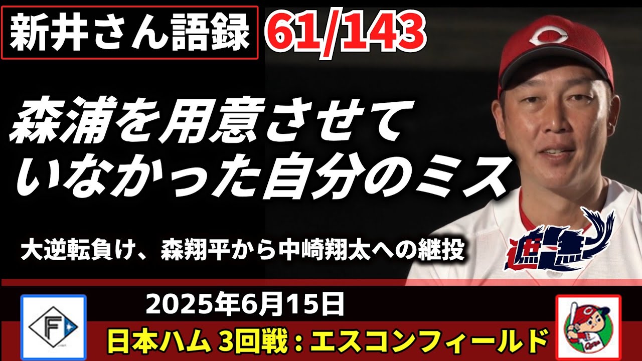 森浦を用意させていなかった自分のミス【新井監督語録:2025年6月15日】大逆転負け、森翔平から中崎翔太への継投。