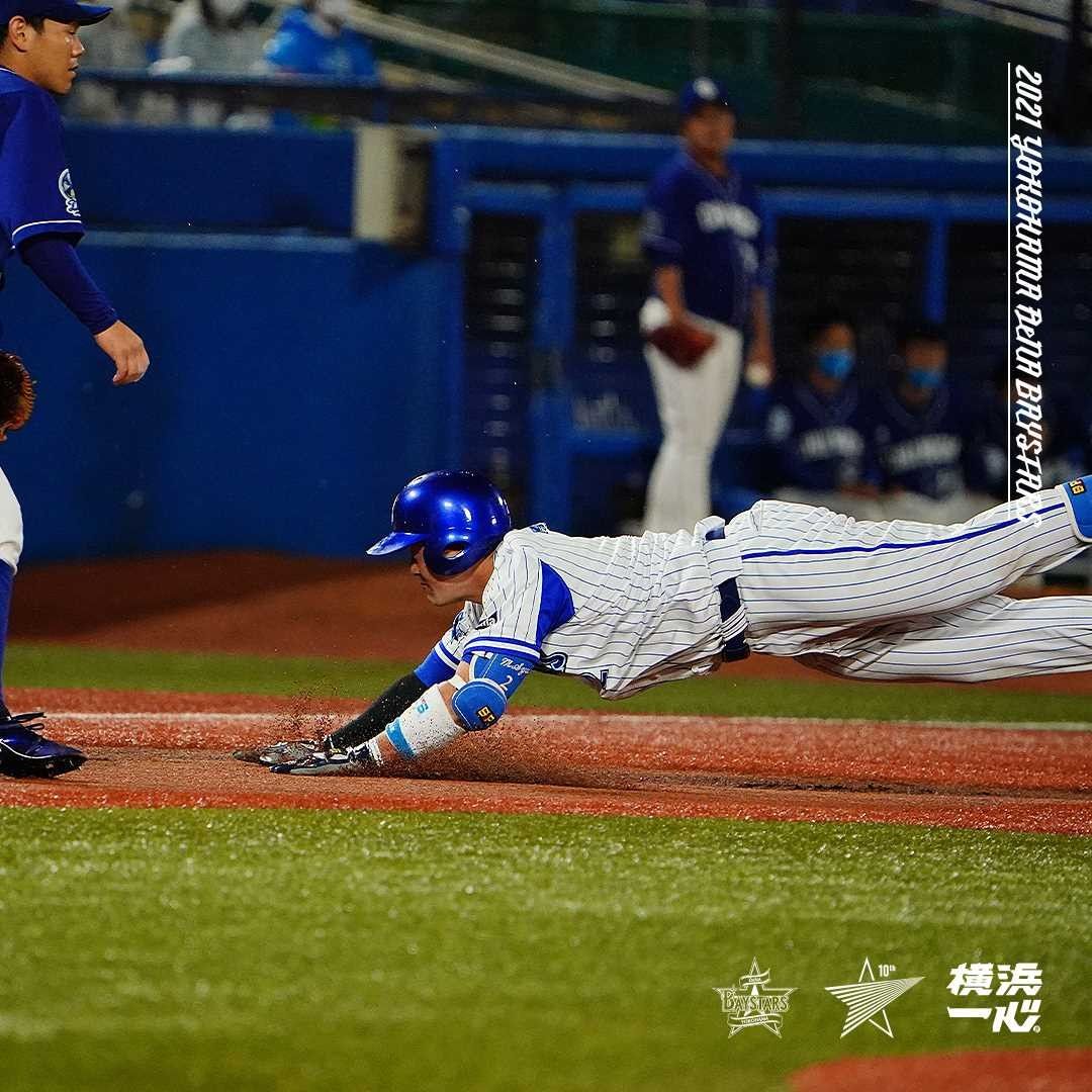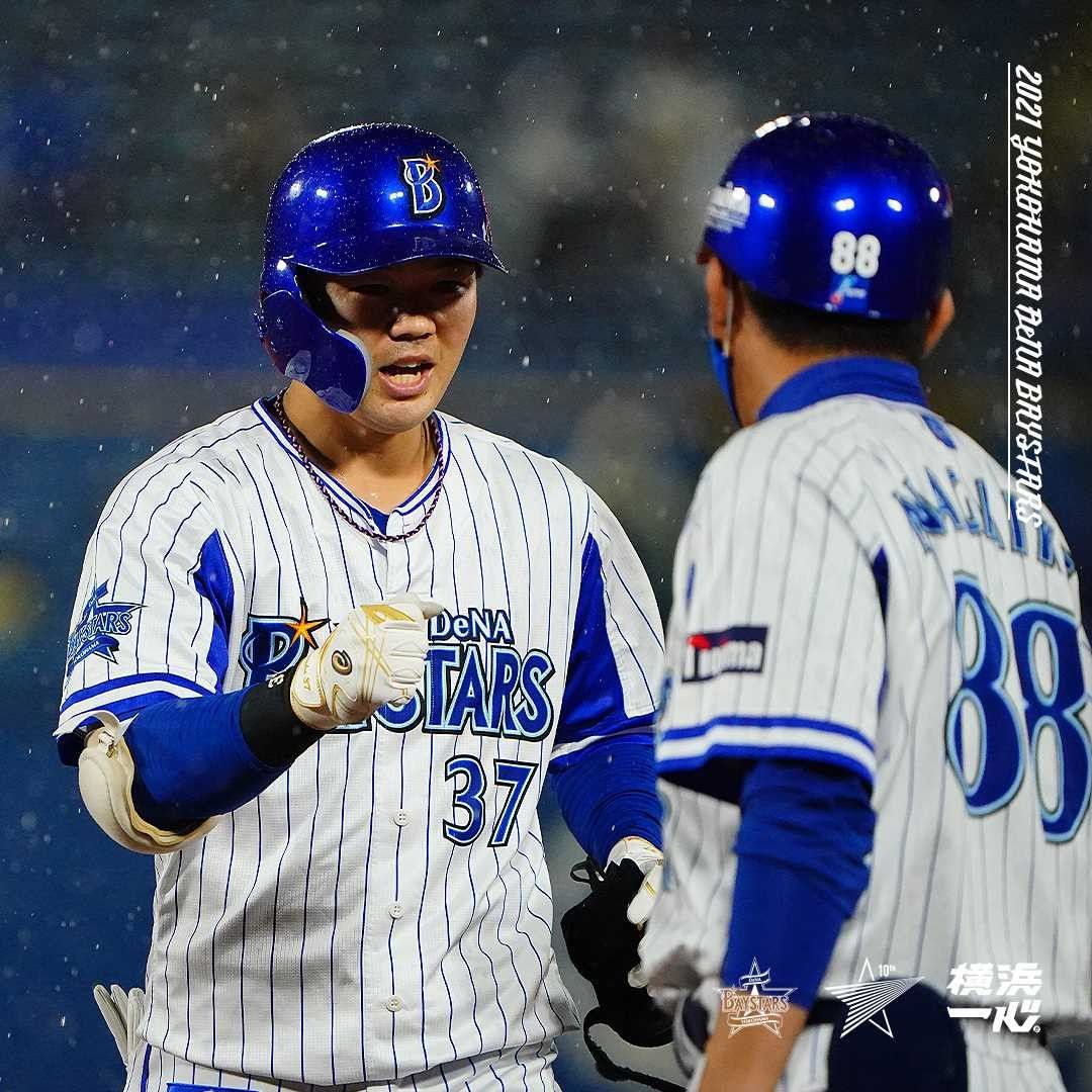 .1点を追う5回2アウト2塁から、代打 #牧秀悟 選手が同点タイムリー3ベースを放つと、#桑原将志 選手がタイムリーで続き逆転に成功!その後、強くなった雨により、降雨コールドで4連勝!!.#baystars baystarsNPB Central LeagueOfficial MediaYOKOHAMA DeNA BAYSTARSYOKOHAMA DeNA BAYSTARS Official Media桑原将志横浜DeNAベイスターズ牧秀悟 NPBHUB.COM | The Fanbase of Nippon Baseball & Nippon Professional Baseball