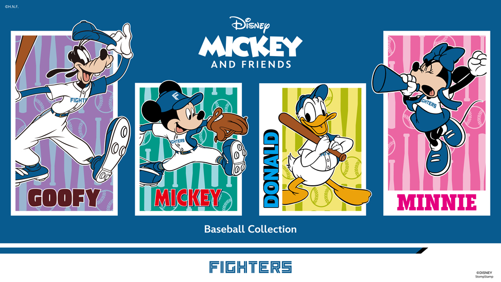 北海道日本ハムファイターズでは6月17日(火)から、ディズニーの人気キャラクター、ミッキーマウス、ミニーマウス、ドナルドダック、グーフィーデザインのコレクション「Disney MICKEY AND FRIENDS Baseball Collection」を、オフィシャルオンラインストア・ファイターズファミリーストアで販売いたします。