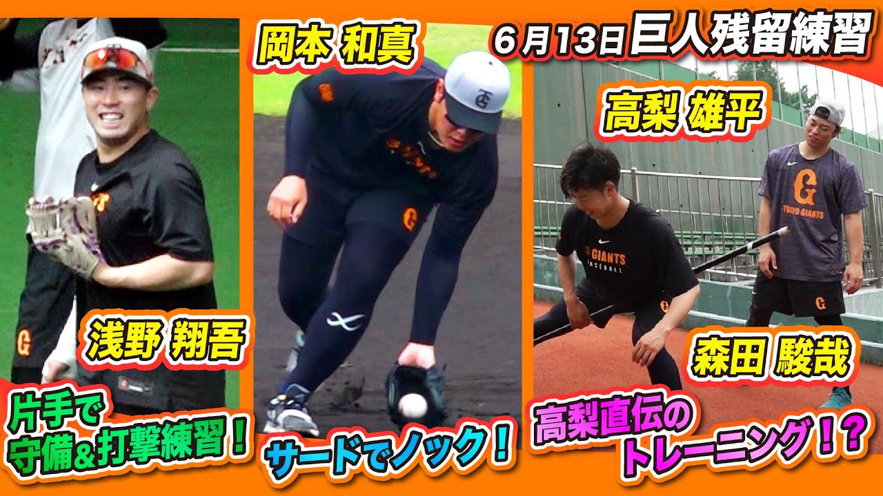 【ケガ治療中の選手が回復の兆し?】岡本和真がサードノック開始&浅野翔吾は片手で守備&打撃練習|6月13日巨人残留組練習