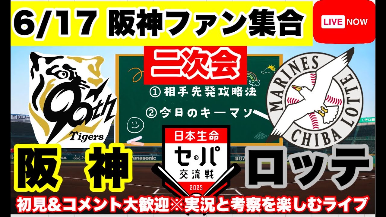 二次会【阪神公式戦ライブ】6/17 阪神vsロッテ あなたのコメント全部読みます!今日の勝敗ポイントを探ろう コメント大歓迎 #阪神タイガース #千葉ロッテマリーンズ #プロ野球 25/6/17