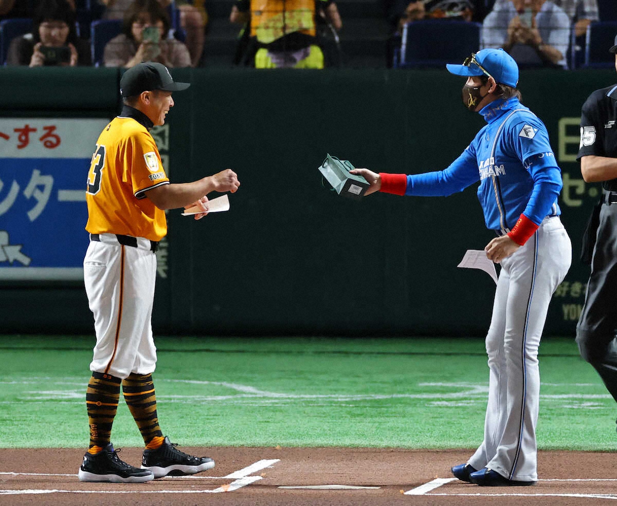 日本ハム・新庄監督、試合前の巨人・阿部監督へのプレゼントは“お返し”だった「差し入れもらったんで」(スポニチアネックス) – Yahoo!ニュース Yahoo!ニュース【巨人】阿部監督、メンバー表交換時に新庄監督からプレゼント渡される スポーツ報知巨人・阿部監督、坂本勇人、丸佳浩の1、2番「率とか以外の…」 新庄監督の紙袋の中身は「秘密」 サンスポ日本ハム・新庄監督 リスペクトの球界レジェンドと熱いトーク→深々と頭を下げて両手で握手 デイリースポーツ日本ハム・新庄監督「昨日、差し入れもらったんで」巨人・阿部監督への謎のプレゼントはお返し 中身は「言えない」 阿部監督も「秘密です」 dメニューニュース