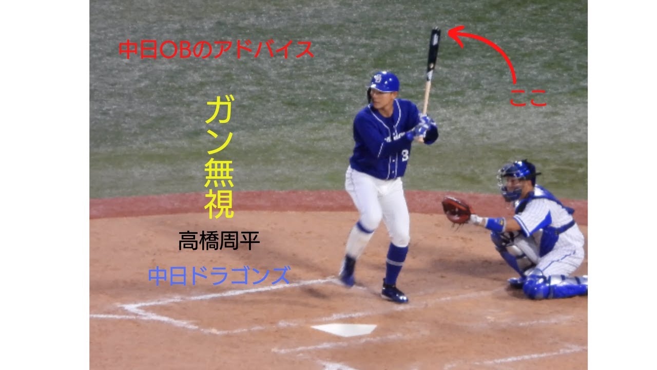中日ドラゴンズ・高橋周平選手の打球が飛ばない理由は、バットのヘッドがキャッチャー側に寝てしまうからです。