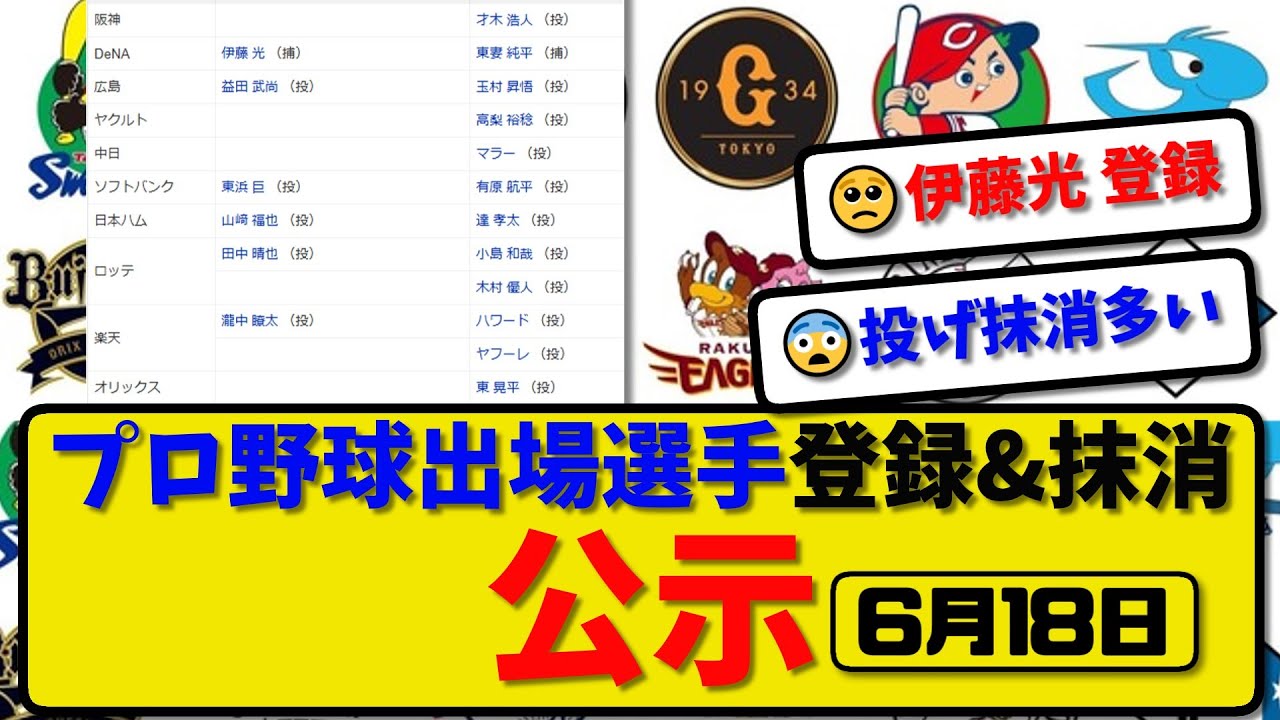 【公示】プロ野球 出場選手登録&抹消 公示6月18日発表|才木&東妻&玉村&高梨&マラー&有原&達&小島&木村&ヤフーレ&ハワード&東ら抹消|伊藤&益田&東浜ら登録【最新・まとめ・反応集・なんJ】