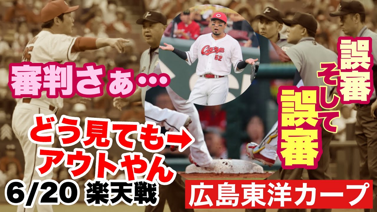【広島東洋カープ】6/20 楽天戦 なかなかの「誤審」がありましたね 一つ目は試合に影響がありませんでしたが、二つ目はガッツリ勝敗に影響 アカンよ・・・ 【森下暢仁】【末包昇大】【新井貴浩】【カープ】