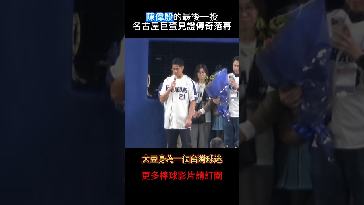 台灣棒球傳奇的最後一投 39歲的陳偉殷 回到他職業生涯的起點—中日龍隊主場 完成了他棒球生涯的最後一幕 名古屋巨蛋螢幕播放影片 對中日龍隊來說 21年前 18歲的