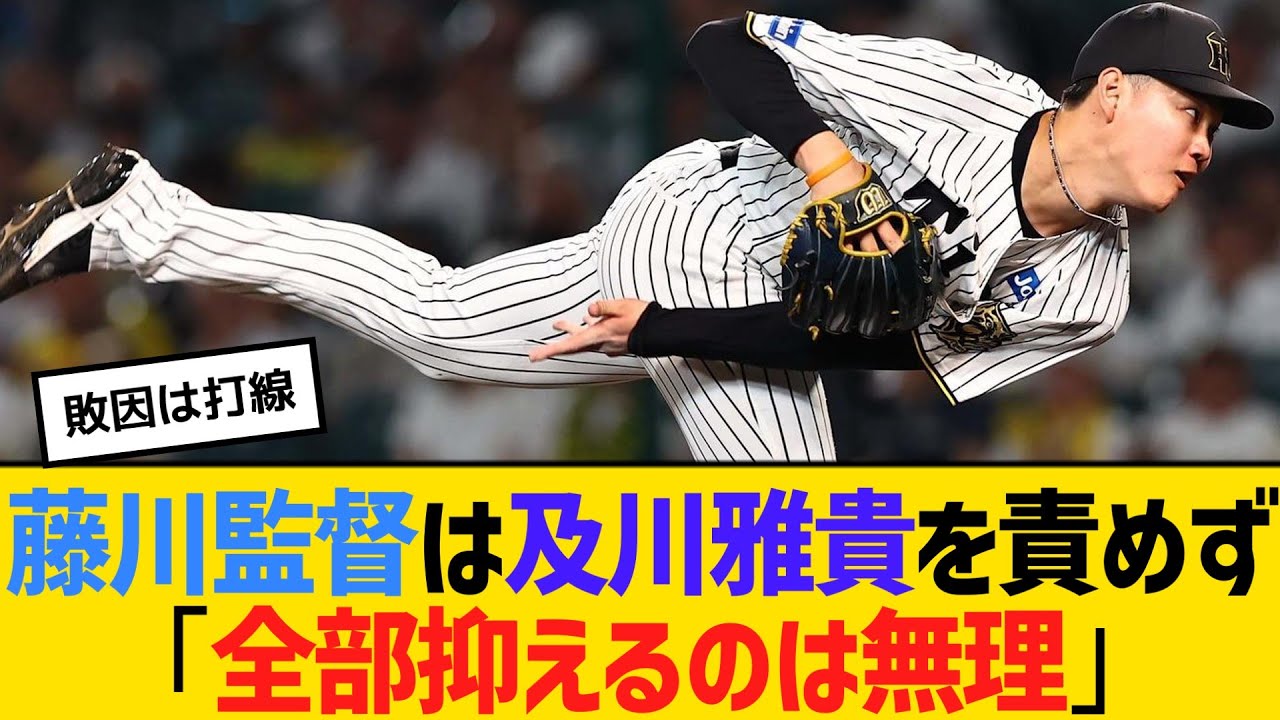 阪神・藤川監督は敗戦投手の及川雅貴を責めず「全部抑えるのは無理」 【ネットの反応】【反応集】