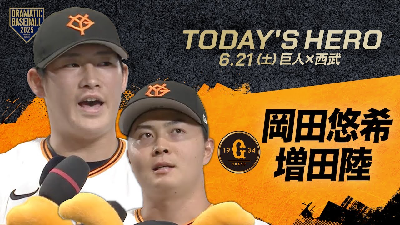 タイムリー2 ベース岡田佑選手そして勝ち越しの 3 ランマ田陸選手ですさんナイスバッティングでした [拍手] ありがとうございます あの場面振り返っていただけますか まあ ライトが回してくれたんでまあ ま返そうとは思ってないんですけどま次に 繋うと思って行きました 岡さんは2ベースヒットが2年ぶりという ことでしたそして打点も2年ぶり 最高の日になりましたね ちょっと今まで打ってなさすぎるんでこっからどんどん打っていけるように明日からも頑張りますさんもう少しだけ岡田さんは昨日まで [拍手] 2 軍の新潟にいてそこから東京に来て今日スタメでした ファームではどんな思いで汗を流したんでしょうか えまいいいい思いをえプロ入ってからえ全然できてなかったんでえま新潟からえ新幹線めっちゃ長かったですけど景色見ながらえどうやって打とうかなとか色々考えながらまいい時間になったんで良かったすね [音楽] ジャイアンツファンの皆さん岡田選手は 東京ドームのお立ち代は初めてだという ことです是非ジャイアンツファンに最後に 一言お願いします え初めましてええ 今日からえジャイアンツの1になりました 岡田です ま今日からえチームにどんどん貢献してってま岡田ゆっていう選手に覚えてもらうように頑張りたいと思いますのでよろしくお願いします ありがとうございますまずは岡田選手でしたさあそして勝ち越のスリーランホームラン選手です今の気持ちを一言最後です [拍手] 今日はベンチスタートあの場面 2アウト1塁3 塁どんな思いで打席に向かいましたか いや本当に岡田さんが打ってえ荒巻も繋いでくれて本当にこれ打って決めてやろうっていう思いで打席に立ちました スタンドに飛び込んで大完成でしたが聞こえてましたか めっちゃ聞こえてましたありがとうございますジャイアンツは明日が交流戦東京ドームでは最後のゲームになりますチームを代表してジャイアンツファンに一言お願いします [拍手] はい明日も暑い気持ちで暑いプレイをするので応援よろしくお願いします 見事な活躍岡ゆ選手増田選手でした放送席どうぞ [拍手] [音楽]