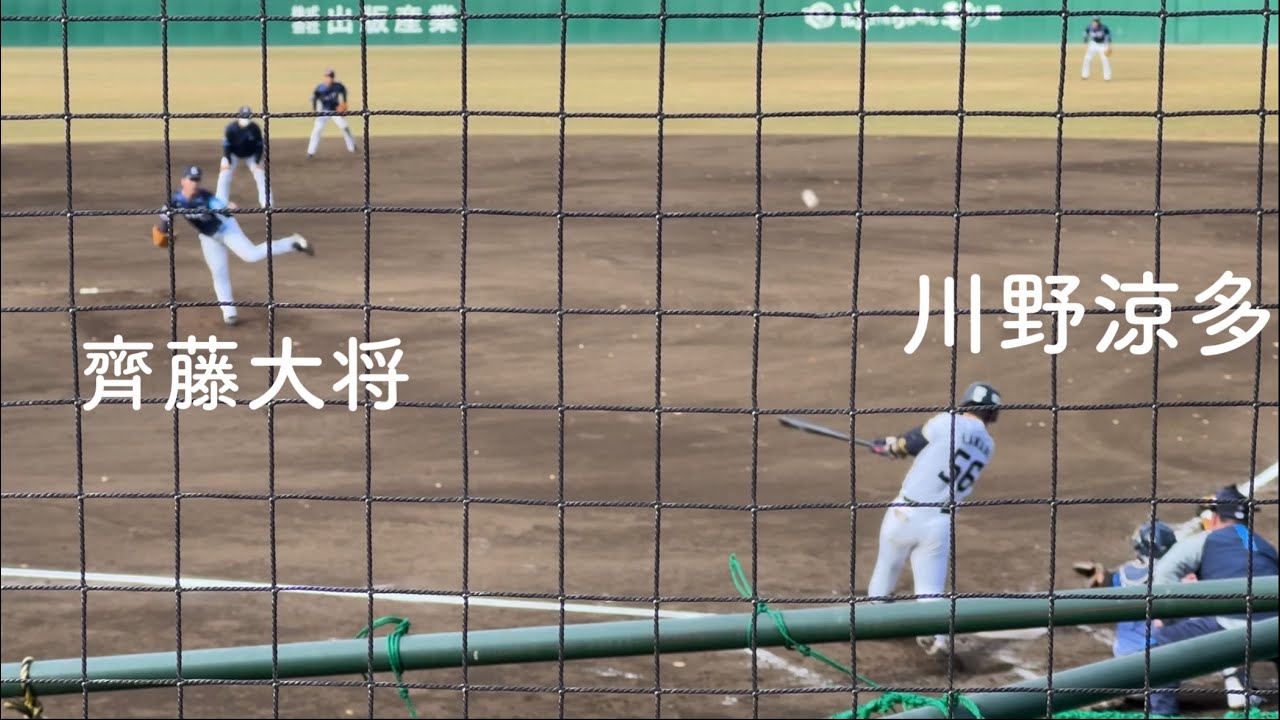 スイッチヒッターの川野選手、右打席で見事なスリーベース!