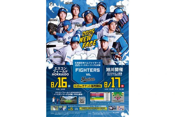 日本ハムは18日、8月15〜17日に行われるファーム北海道開催3試合のチケット販売要項を発表した。8月15日はエスコンフィールドで北海道学生・札幌学生野球連盟創立35周年を記念して北海道社会人・学生選抜とのプロアマ交流戦が行われるほか、16日はイースタン・リーグ、ロッテ戦が同球場にて行われる。17日は場所を旭川市のスタルヒン球場へ移して同ロッテ戦が行われ、8月の道内が台頭著しい若手戦力たちの勇姿で彩られる。