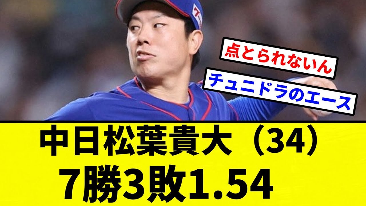 引用  中日松葉貴大(34)7勝3敗1.54