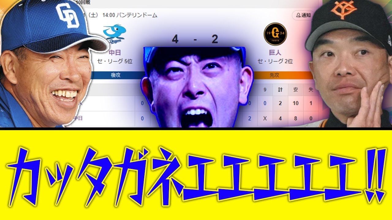 中日の3盾回避力 中日が終盤に競り勝った22の8回に12 塁代打板山が右翼に2点3塁打を放った2 回13 塁デカ到タのスクイーズで先制12の7 回は12 塁で高橋が右声に同点2 塁打を放った先発の高橋広は7回を投げ7 ア打に失点だったその後は清水ず松山と繋いで巨人に得点を与えなかった [音楽] 来た 勝ったがね勝利来たカード全敗また回避3 連で一勝のノマは果たせた 加藤となあY良かったよな キャッチングやり直せ 勝ち清水か高橋広2勝5敗清水達也3 勝礼拝 こんな長だの今年初めてかもなこんな野球やってたらバンドはいつも満員だろうな 板山は代打で生きていけるな板山様々や勝利の息子また来てるかもしれん ありがとう松山さすがやようやっとる ガりからのにっこり クローザーを生み出すのに提評のあるチーム [音楽]
