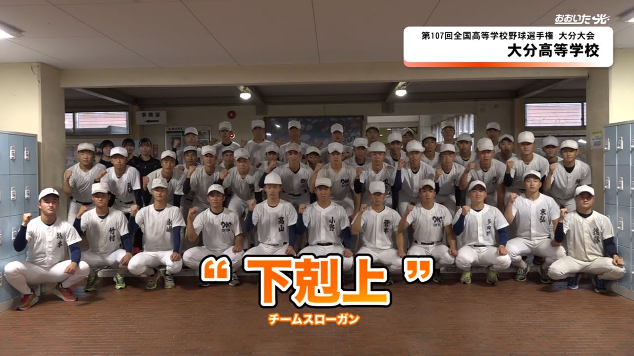 県の高校事たちが甲子園出場をかけて全力で挑む青春の集体夏の高校野球が今年も開催されます今回は出場校大分高等学校を紹介します [音楽] 今年の大分高校野球部のスローガンは下国上どんな相手にも自らの力で頂点を掴み取ります [音楽] え今年のチームはま起動力を使いながらえ先急が良く粘り強くえなってると思います [音楽] ま去年主力で使ってたバッテリーが残って ますのでえピッチャーキャッチャー中心に ま守りの野球ですが攻撃の面でもえここ 最近え非常に打てるようになったので攻撃 面守りと確実にえ成長してると思います 月下場です常に挑戦者の気持ちを持って どんな相手にも 挑戦し続けるという意味でこのチーム スローガにしました 春のえ準決勝の名方戦もこの前やった代表 決定戦もやはり1点の重みっていうところ で1点っていうのがどれだけ重要かって いうのを選手たちで話し合えながら特に1 球の質を純的に取り組んでやっていきます 2年連続でベスト4 に進出しその実力を証明したものの準決勝の壁を超えることはできなかった大分高校今年こそ練習を積み重ねてきたそうです [音楽] えこの夏え自分が 1番打って自分が1番走って自分が1 番声出してえこの夏の主役になれるように頑張ってやりたい気持ちです [音楽] え新チームが始まってからえ自分は投げ込みを特にえ力を入れてやってきました [音楽] 3 年間のやってきたことをえしレギュラーを取ってえチームに貢献します緊張している気持ちもあるのですがえっと今は絶対に甲子園に行ってやろうという強い気持ちが勝っています [音楽] はい バッティングの面でチームにチームの勝利に貢献できるようにこだわり持ってやってきました [音楽] ここからは大分高校の注目選手を紹介 大分高校のエースピッチャー木村 昨年の夏の大会にも出場 今年も力強い投球でチームの勝利に貢献します え今年はとにかくチームを勝せる勝たせるピッチングをするためにえ取り組んできましたえ去年は準決勝で負けてしまってそっから今年 1 年間ずっと悔しい思いをしてをしてきたのでえ謎は必ず取って更戦に行きます 奥義の金めキャッチャーただの 相手打者の特徴を見極め多彩の吸収やコントロールで相手を翻弄します 2 年連続で悔しい思いをしてるので今年は絶対こうしていきます チームをまとめるサード小野守備では鋭い反応と堅実なプレイで内ヤを支えます 危ない キャプテンとして戦闘に立ちチームを引っ張りますですか えどんなに辛い状況辛い状況や苦しい状況でも全員が笑顔でいられるようにしっかり後ろからサポートしつつそして戦闘に立ってしっかりチームを引っ張っていけるようにやっていきたいと思います 高校野球生活3 年間グラウンドで全力を尽くしたその影には選手たちを支え続けたくの存在がありました 僕のためにえ大分高校に進学させてくれてありがとうございますえ恩返しできるようにえ絶対に行くのでえ最後まで見守っててくださいと いつも自分を支えてくださっているお父さんお母さん朝ごはとご飯を前に作ってくれているおばあちゃんにかっこいい姿を見せられるようにしていきたいです今まで自分に何不由なく野球をやらせてくれた家族やこれまで自分に関わってくださった全ての方々に更新を決めて結果で恩したいと思います え人にさられてまここまでやってこれたので ま甲園という最高結果最高な結果で恩返ししたいと思いますえ人生で 1度しか味わえない2 年半だと思いますえ自分に関わってくださったお父さんお母さんえいつもチームに差しをしてくれる安藤先生え絶対に甲園に行って恩返します えお父さんお母さんえつも遠くから支えてくれてありがとうございます え今年は絶対に甲子園に行って恩返してきるのに頑張ります 3 年生にとってはこれが最後となる大会本大会への意気込みを聞きました え夏の大会に向けての意気込みはまあ 2 年連続まベストホというま悔し変わったんでま最後夏ま甲子園行って甲子園行きますえっと安藤先生という方から石川お前はムードメーカーなんやから早く戻ってきてチームを盛り上げんとなと言われたのでしっかり怪我を直してまたムードメーカーとしてやっていきます はいはい え自分は去年ピッチャーとして出場したけどあまりいい結果が出せなかったので 今年はチームを勝利に貢献できるようなピッチングをできるように頑張りたいです はいえメンタルとの戦いです えどれだけミスをしてもえどれだけ打てなくてもえどれだけえ他の人に何と言われようがえ自分は自分のプレイをしてえ全力でえこのチームを盛り上げてえ絶対夏頂点に頑張ります え今までやってきたことを全力で出して甲子園に導きるような投していきたいです [音楽] 下国上今年の大分高校は下からの逆襲で甲子園という夢の舞台を狙います [音楽] [拍手] え3 年生に至ってはもう最後の夏ということですがもう緊張なくね思いっきりやってくれればそれで十分だと思ってますのでえ私自身もそ