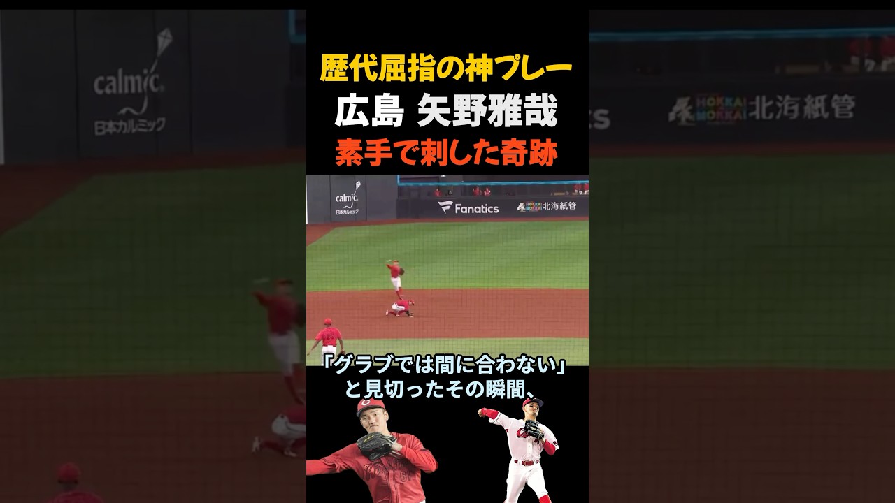 この動画を見て 2025年6月15日スコンフィール 広島隊スポンさに位を見ない衝撃のプレイが [拍手] 9回絶妙な打球が 3 夕感を襲うショート矢野正が俊敏に追いつくラブでは間に合わないと見切ったその瞬間右手を差し出し素で補給そのまま迷いなく [音楽] [音楽] 1 塁へ早車も当然全力で駆け抜けてくる最後は投げ出すようにライディ [音楽] 鑑定はアウト静まり球場にが戻では 間に合わないとされる打球を彼は止め そして指したあの一瞬は技術とフィジカル を極限まで取りすましたものだけが届く 領域誰にでもできる守備ではないそれは まさに矢野正屋だからこそ起こせた衝撃の ワンプレーだったそしてそんな異次元の 守備を可能にする彼に私たちはこれからも 目を離せない