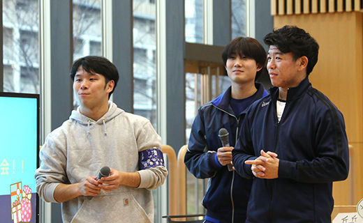 主催した体育会本部の岩井 大起 委員長(法律学科3年)は「トークショーでは並木選手への質問が多数寄せられ、どれも興味深い内容ばかりでした。委員長としての初仕事として、このような企画に携われて今後の自信になりました」、高崎 脩 副委員長(経済学科3年)は「並木選手の足の速さに、改めて感動しました。この企画を行って良かったです」と熱っぽく語ってくれました。