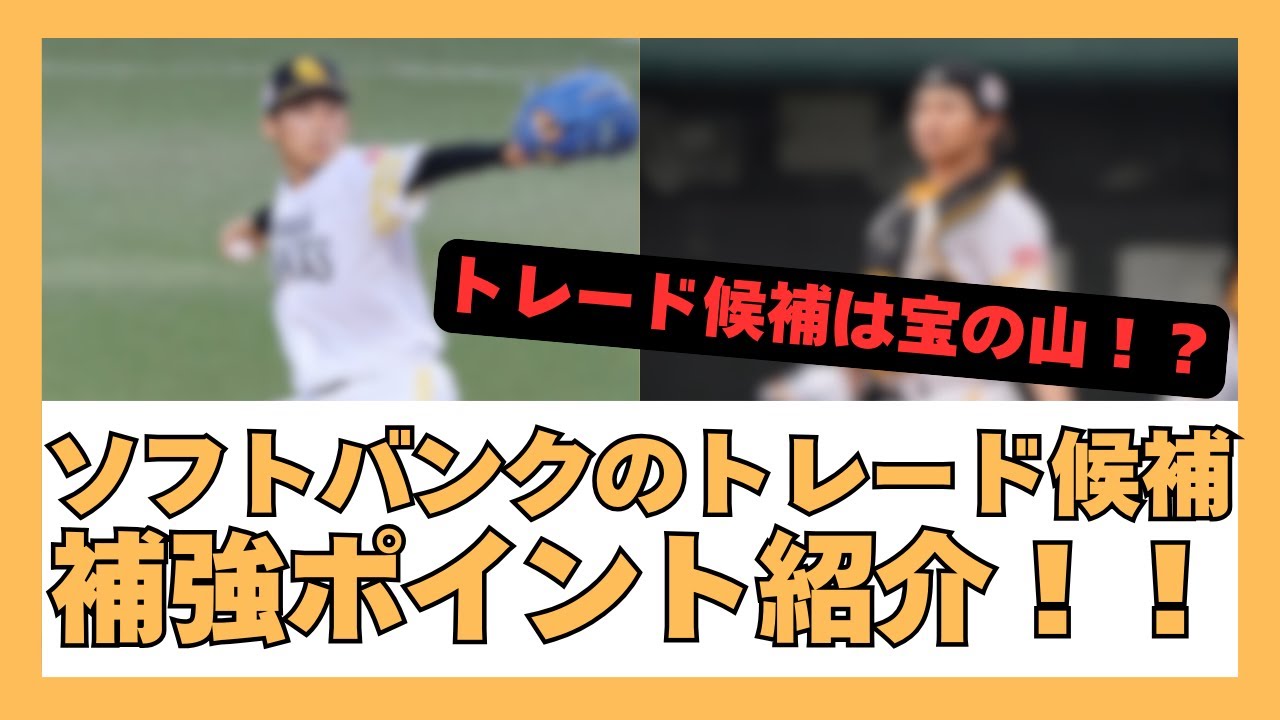 はいどうも皆さんこんにちは今回は トレードまで約1ヶ月ということで今年の トレードに良さそうな選手そして補強 ポイント等々を紹介していきたいと思い ます今回はソフトバンク編ということで やっていきますよろしくお願いいたします 今回はソフトバンク編なんですけれども他 のチームの動画も実はあげておりまして こちらは概要欄の方に乗っけておきますの で是非ねそちらを見ていただけると非常に 嬉しいですそれでは早速1人目から参り ましょうまず1人目ですね1人目はバンド 融投手になりますバンド投手はですね今年 は2軍で先発をやっているんですけれども 2021年などはね中継で活躍1軍でねし たりとかしていましてま今年もね2軍では 全然いい数を残しているんですよね多球団 だったらもうローテに入れるんじゃないか ぐらいあのま安定したピッチングをして いる投手になりますね現状ソフトバンクの ローテーションにもね食い込めるぐらいの 力はあると思うんですけどもま今のところ はまだ2軍にいましてま若手の枠で言い ますとね前田じ投手だったりとかあとは 松本春投手とかねまこの左2人がやってる んですよねまそこに入って来ると思うん ですけどどうなんですかねまここは ちょっとチーム事情とか色々あると思うん でま難しい部分ではあると思うんですけど もこのまま2軍にねいるのであれば やっぱりトレードに出して環境を変えた方 が絶対にチャンスは増えると思いますし やっぱり数字とかねうん玉のま映像とか見 ましたけどもやっぱりもったいないんです よね絶対1軍でうんやれる力はあると思う んでねま少なくともチャンスは与えて 欲しいなっていう風に思うんですけどもま やっぱりソフトマークの層の厚さはね やっぱすすごいんでねうんまそういうのも あってま今回はえバンド投資を選手させて いただきました続いて2人目ですね2人目 は谷川選手になります谷川選手はですね キャッチャーの選手なんですけども非常に ねこうバッティングも守備もバランスよく いい選手でして今年に関してはね打撃の方 もいい形でこうスタートからね数字を残し ているんですよね谷川原選手は何と言って もこの肩の強さですねこれが非常に魅力的 な選手で盗塁措置率も2軍ではありますが いい数字を残していてまピッチャーに依存 する部分もね通りはあるんですけれども それでもねまあの素人が見てもあ片強い なっていう風に思えるのでそこはすごい 魅力ですよねそんなね魅力たっぷりの谷川 選手なんですけれども一軍ではやっぱりね 海野選手が正に入っていてサブだと峰井 選手とかあと渡辺陸選手とかが入って しまっていてなかなかこう出場機会って いうのがないんですよねま他のところで あればま間違いなく1軍には入ってるん じゃないかなっていう風に思えるぐらいの 能力はあるんですけどもまそこはね色々 チームの事情とかもあると思うのでま なかなか出れないのであればもうトレード に出しちゃってうんチームでやっていった 方がま谷ガ選手にとってはいいんじゃない かなという風に思ったので今回選手させて いただきましたはいということでね トレード候補2人紹介したんですけれども 今度はですね補強ポイントの方ですね こちらを紹介していきたいと思いますそれ でソフトバンクの補強ポイントの部分なん ですけれどもソフトバンクは非常にねこう 選手層が熱いチームなので補強するポイン トっていうポイントがいまいこうないと いうかもう埋まってしまっているんですよ ね数が多いのでうんでもまそう考えるとま やっぱ中継ですかねリリーフ陣だと やっぱりかなりこう流動的なポジション ですしま何でもいいなっていうところある と思うのでうん他のチームで良さそうな 中継でうんリリーフに出せそうな選手を ちょっと選出していこうという風に思い ますまずね1人上げさせていただくと ドラゴンズですね中日ドラゴンズの近藤 連投集ですねコンドレンとしては非常に こうファームでいい水を残していてま ソフト暗価はね同じリーグなので多分見 てると思うんですけどもま左でもね150 前後投げるピッチャーですしまもしかし たらねここまで行った一軍も全然あると 思うのでまちょっとトレードはどうかなっ ていうところはあると思うんですけどもま ソフトバンクのいい選手を出せばうんそれ こそねドラゴンズとか結構先発陣が薄いっ てところが意外とあるのでバンド選手と トレードとかねしたら結構面白いんじゃ ないかなという風に思いますねあと実績的 あるところで言うとAAS選手とかですか ねまここは本当に先発でも中継でもえ実績 があってま特に中継だとね1年やったえ 成績とかもあるのでうんまここもすごく いいんじゃないかなという風に思いますね まカープがあんまり出しそうなイメージは ないですけれどもうんまこういうね ちょっと大きいトレードもあってもね ファンからしたらすごく楽しいのでうんま こういうの見てみたいなという風に思っ