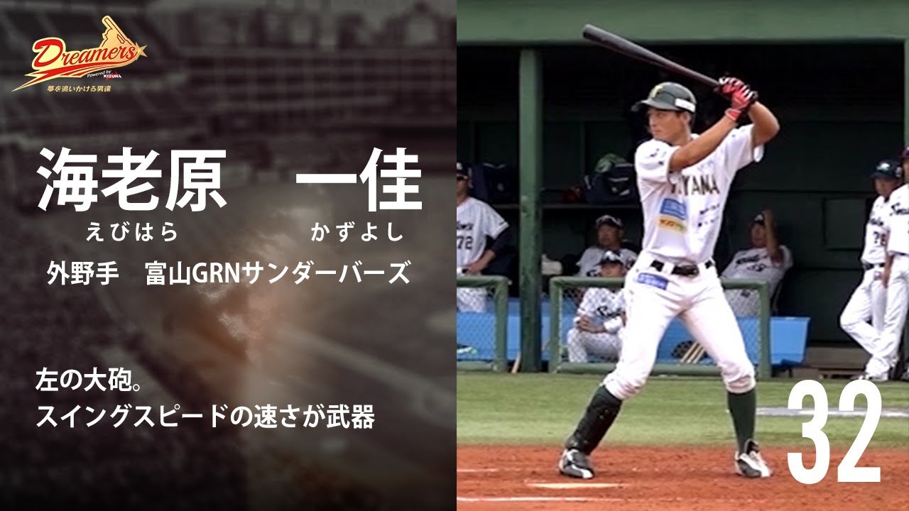 プロ野球ドラフト会議2018の独立リーグ・ルートインBCリーグのドラフト候補「富山GRNサンダーバーズ」の海老原一佳選手の試合映像を公開!創価高校を卒業し、創価大学へ進学し、BCリーグで活躍。左の大砲。スイングスピードの速さが武器の選手。
