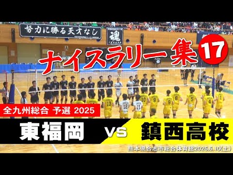 鎮西高校 vs東福岡高校のナイスラリー17プレイ 2025全九州総合バレー #岩下将大 #一ノ瀬漣 #西原涼瑛 #税所蓮嘉
