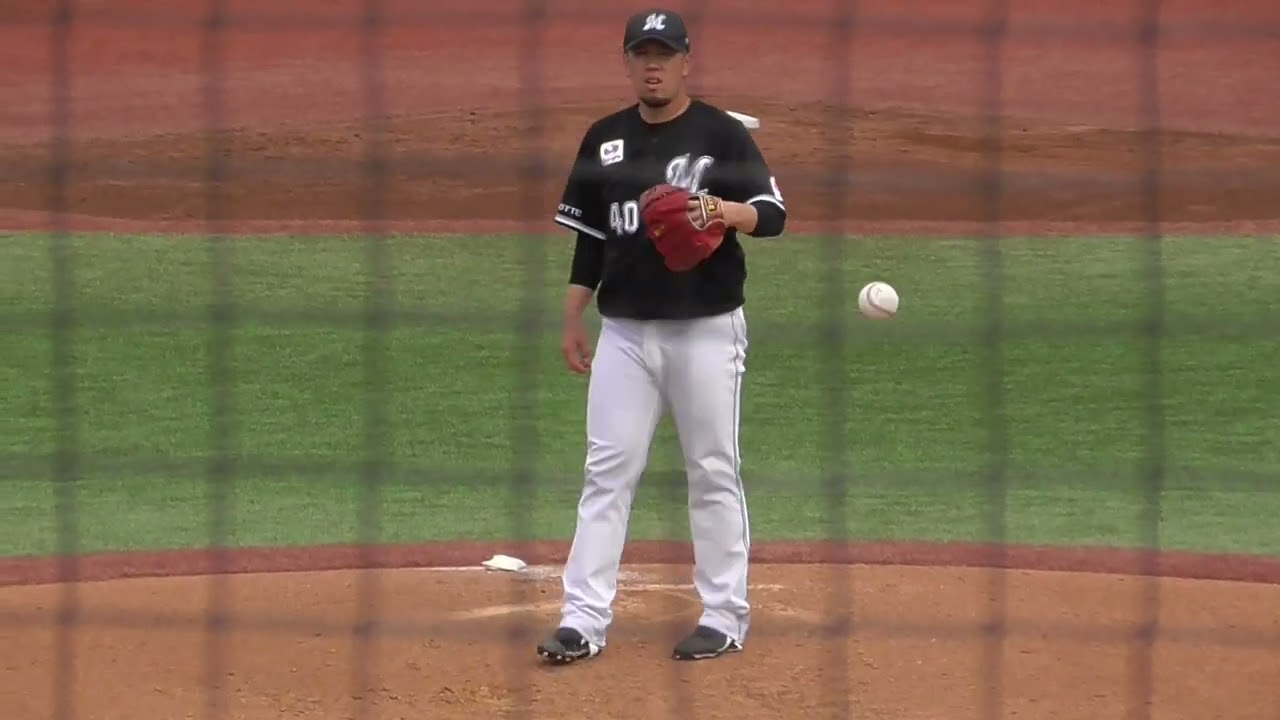 2025年6月12日 イースタンリーグ 千葉ロッテ・ 西村 天裕 投手の準備投球(ボールデッド中)