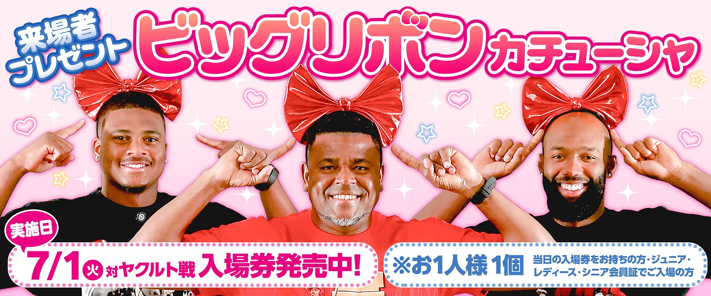 広島東洋カープは、7月1日(火)の東京ヤクルトスワローズ戦で、「ビッグリボンカチューシャ」を来場者全員にプレゼントする。