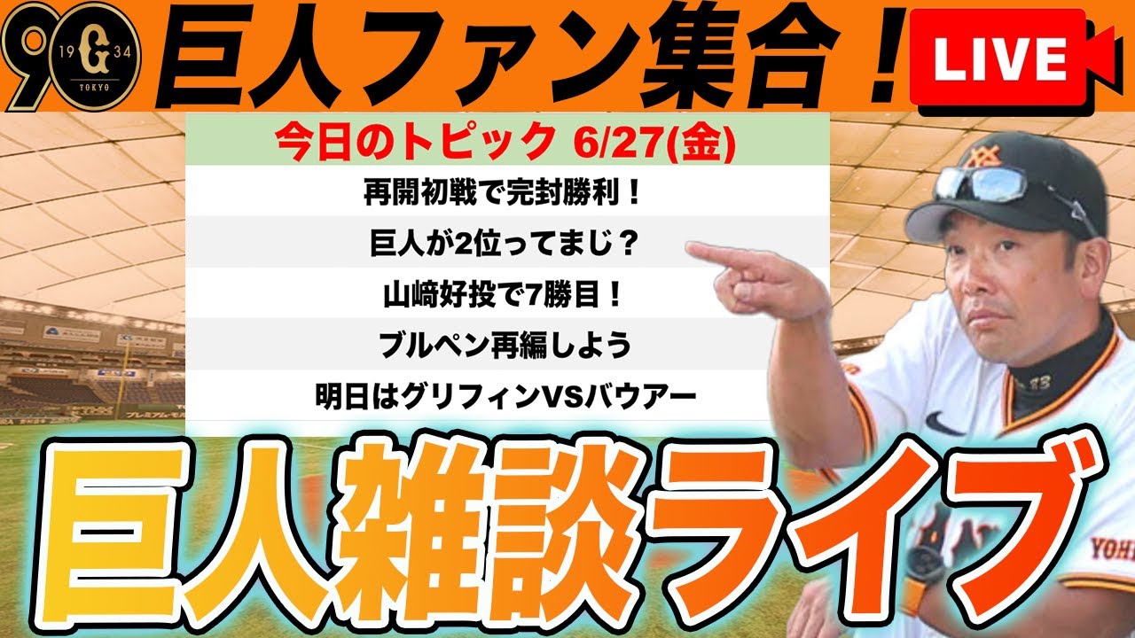 【巨人ファン集合/祝勝会】DeNAに完封勝利で2位浮上!山﨑伊織7勝目!負傷降板の大勢も大丈夫!ブルペン再編案など雑談 読売ジャイアンツ