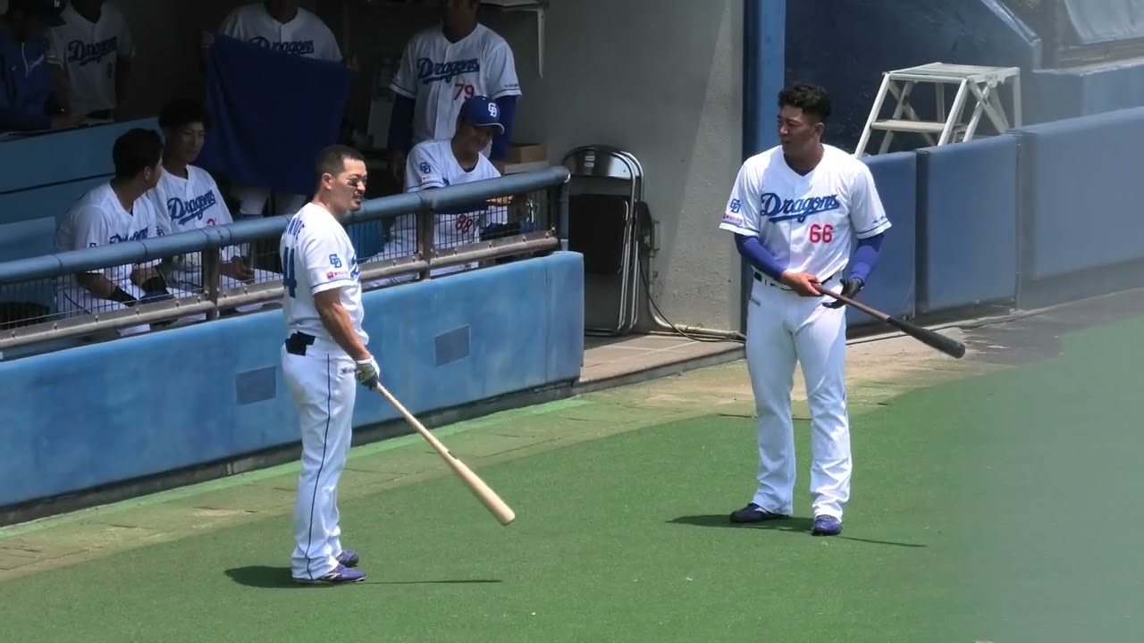 中日ドラゴンズ 川越誠司選手・ブライト健太選手・鵜飼航丞選手・津田啓史選手が素振り 土田龍空選手は素振りというより寸止め 2025/6/20 ナゴヤ球場 ボールデッド中 試合開始前 Saitama Seibu Lions埼玉西武ライオンズ川越誠司 NPBHUB.COM | The Fanbase of Nippon Baseball & Nippon Professional Baseball