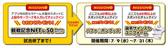 さらに、対象のバファローズ☆ポンタコラボメニューを購入した方に、購入特典として「クリアトレカ」をプレゼントする他、Ponta公認ポイ活アプリ「プラリー」で球場内のスポットでチェックインした方にもれなく観戦記念のNFTや50Pontaポイントをプレゼントするキャンペーンを開催します。計3カ所以上にチェックインした方には、抽選でバファローズ☆ポンタグッズや、選手のサイン入りユニフォームをプレゼントします。