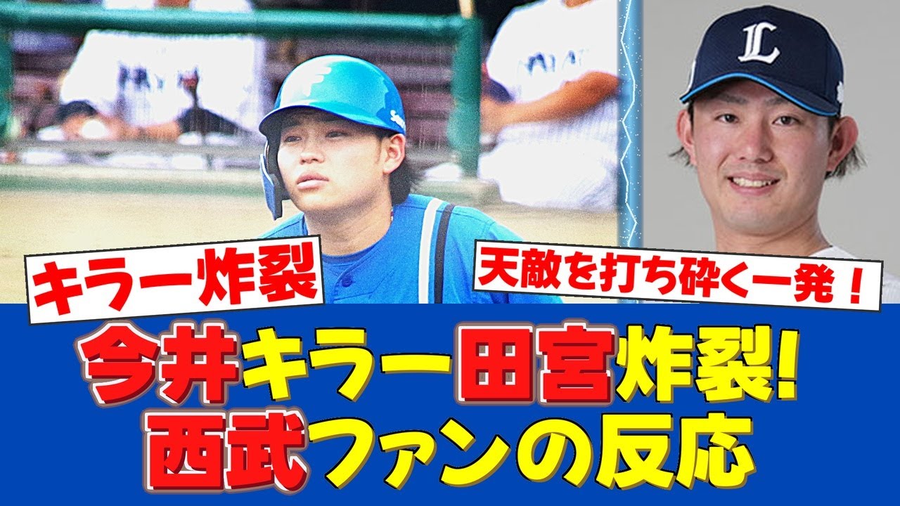 今キラー宮裂ファンの反応 6月27 日にベルーナドームで行われた西武隊日本ハム線で日本はム宮ゆが今いキラーブリを発揮した 2点を追う4 回西武の今達也投スから反撃の 3号ソロホームランを放ったやは 打ったのはスライダーですレフトで出してもらっているので何とか打撃で結果を残したいと思っていました まずは1 点取り返すことができてよかったです と語った西武の今達也投手に対して試合前まで通算打率 5 割と高愛症を誇る岩はこの日本職の保守ではなく 2番火で先発出場したその期待に答え 2回の第1 打席では追い込まれながらも発球粘りスライダーを左翼へ運ぶ 2塁打を放っているやゆアは [音楽] 4回の3 号ソロホームランを含めこの日も今いた スから2 アンダを記録したこれにより今トーストの通算対戦成績は 12打数7アダ1本塁打となり対戦打率を 5割8分3人まで上昇させた やったタミアのホームラン最高すぎる今アプリが気持ちいい じゃあタミーのホームラン来たレフトでもしっかり撤たすとか噛みすぎる タ前の打率がとんでもないことになってるな完全にカモにしてる 今日のホームラン甘く入ったスライダーを完璧に捉えていた 星だけじゃなくてダイヤも守って打撃でも結果を残すなんて本当にすごいわ本人の努力が伝わってくる [音楽] 第1打席で粘って2 塁打ったのも大きかった完全に玉筋は見えてる感じだったしも必然だったかもしれないなよっしゃ暗ののだここから一気に逆転するぞ暑すぎるぜ [音楽] 本当に頼りになりますね打撃で結果を残したいっていう現実するのが素晴らしい [音楽] セイブファンなんでだけこも簡単に撃たれるんだよバッテリーは何を考えてるんだ少しは学習しろ 相性ってあるけどここまでやられると何か特別な対策が必要だよなでもファイターズからすれば最高のキラーカードだ やばい撃った瞬身体行ったと思った整理の前で叫んじゃったよ デイブファンまたやかよ もう顔も見たくないわなんでうちのエースが抑えられないんだよ 気持ちは分かるけどそれだけたや君がすごいってことようちの子が 1 番タヤ選手の今いキラープリはすごすぎるのだこの調子で打ちまくるのだシャケ丸るシャけ丸るんルんルん あ