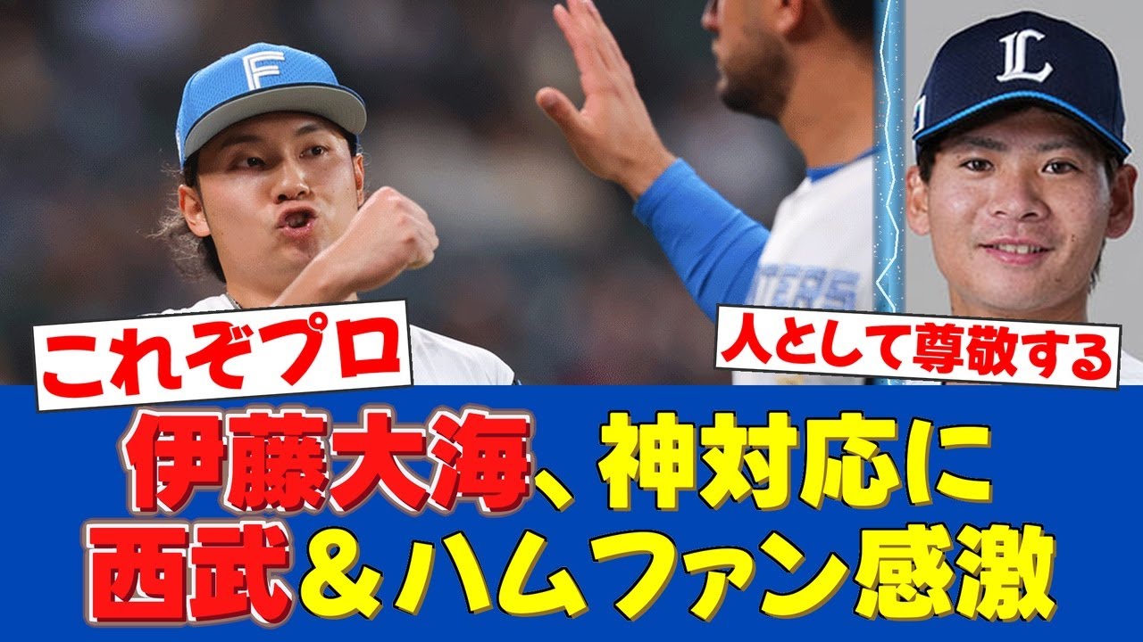 日本ハムの伊藤大海投手が、西武の仲田慶介選手に死球を与えた直後、マウンドを降りて駆け寄り謝罪。そのスポーツマンシップ溢れる行動に、敵味方なく称賛の声が上がりました。