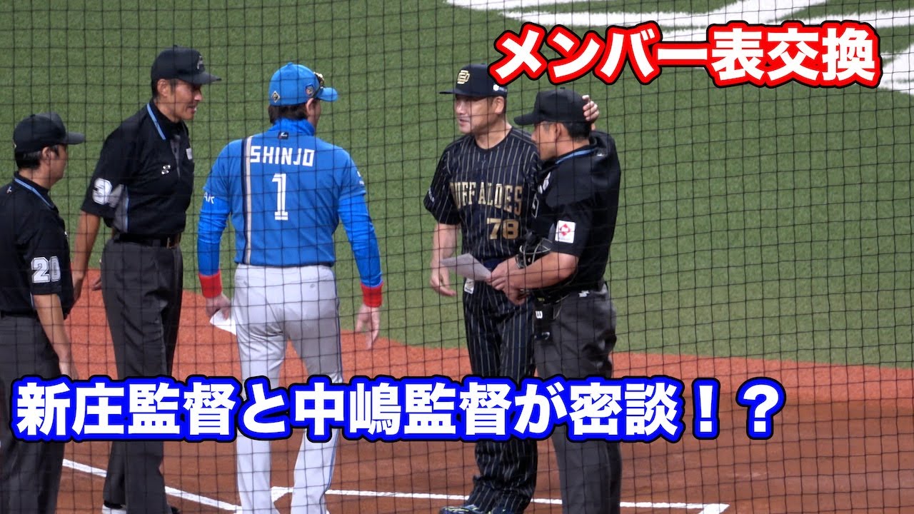 新庄監督がメンバー表交換で中嶋監督となにやら密談→球場がざわついた瞬間がこちら 2024年9月22日 オリックスvs日ハム 京セラドーム #新庄監督 #中嶋監督 #北海道日本ハムファイターズ #オリックスバファローズ 参考 https://news.yahoo.co.jp/articles/f1c8f0cef082c27b67de7b623fec0476555f2cc6 ORIX Buffaloesオリックス・バファローズ中嶋聡 NPBHUB.COM | The Fanbase of Nippon Baseball & Nippon Professional Baseball