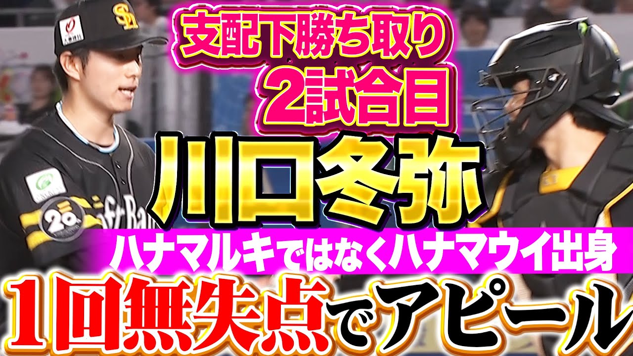 6月20日に支配下登録を勝ち取り、21日の初登板は甲子園…ということで”パテレ的”NPB初登板となった福岡ソフトバンク・川口冬弥。先頭打者に四球で出塁を許したものの、次の打者は持ち味のフォークを活かし3球三振。後続も打ち取り1回無失点のピッチングをみせた!!