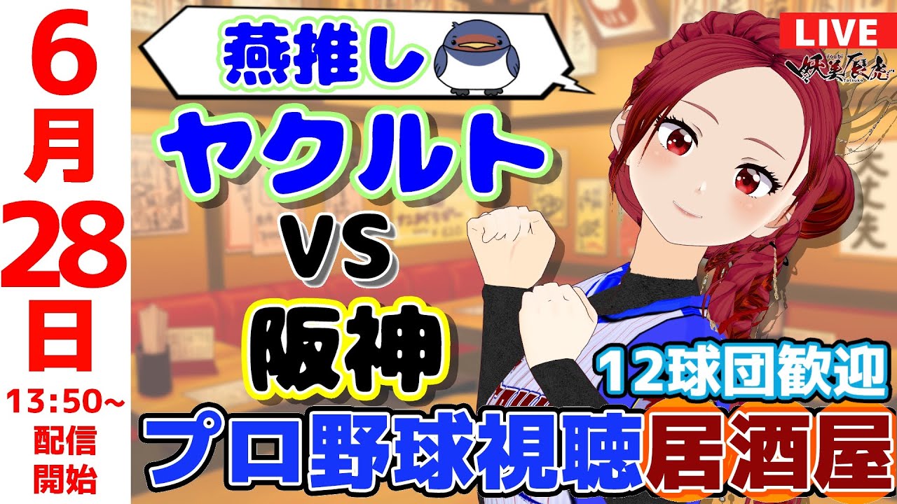 【 ヤクルト 同時視聴 応援 】2025/6/28 プロ野球雑談居酒屋!12球団歓迎! #妖美辰虎【 Vtuber #東京ヤクルトスワローズ #阪神タイガース 】