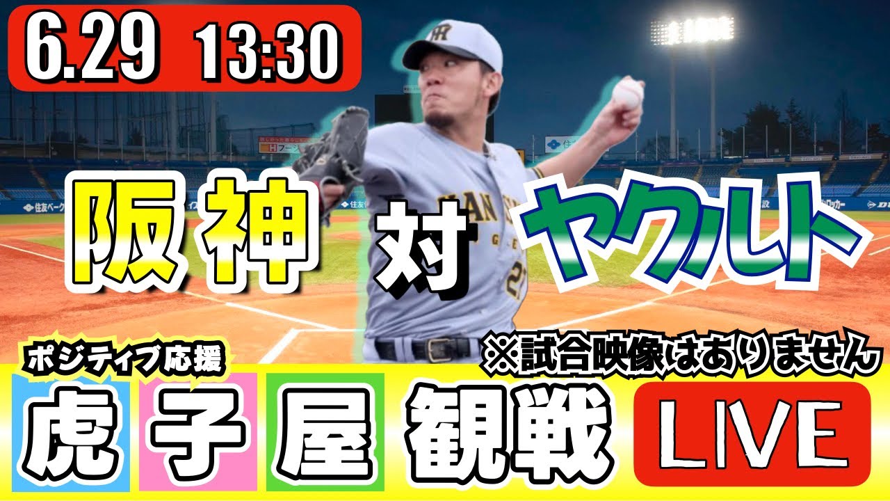 【全力応援 阪神ライブ】6/29 阪神タイガース 対 東京ヤクルトスワローズ の公式戦を阪神ファン夫婦が皆さんと一緒に観戦・応援するLIVE配信です。 先発予想:(阪神)伊藤将司 (YS)アビラ