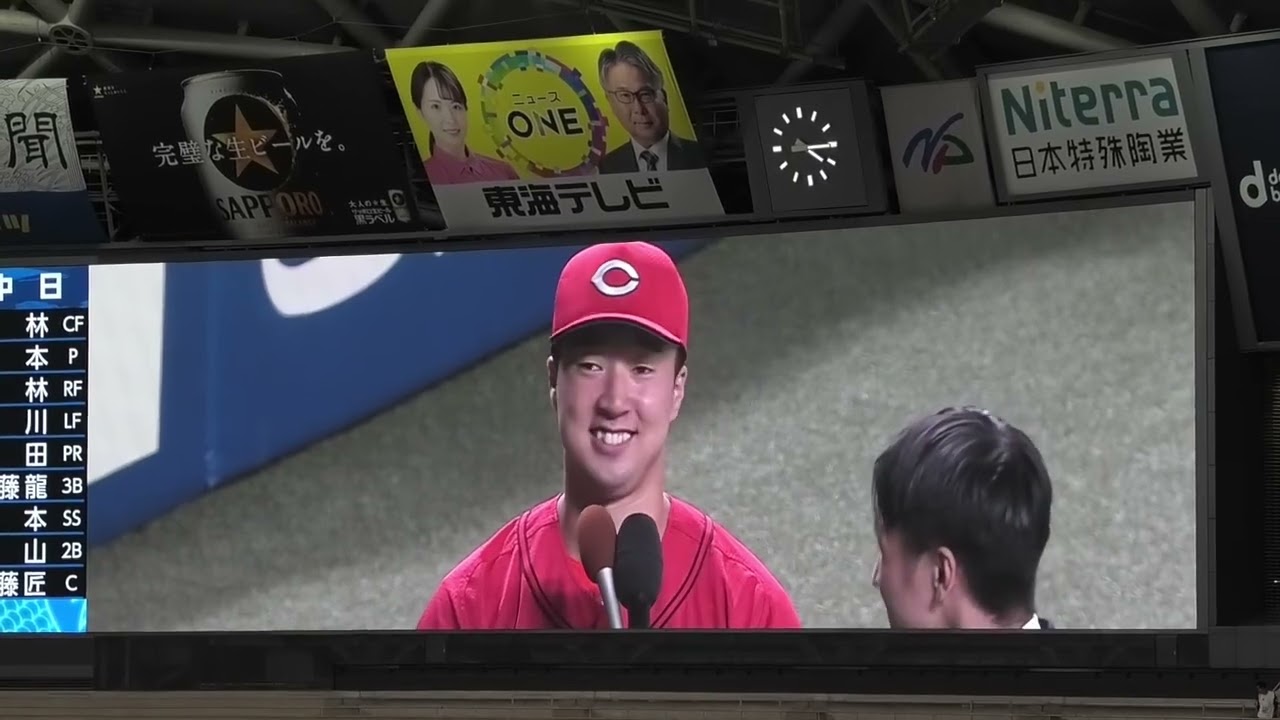 広島カープ2024年ドラ2佐藤柳之介のプロ初登板初勝利ヒーローインタビュー!広島東洋カープvs中日ドラゴンズ 2025年6月29日