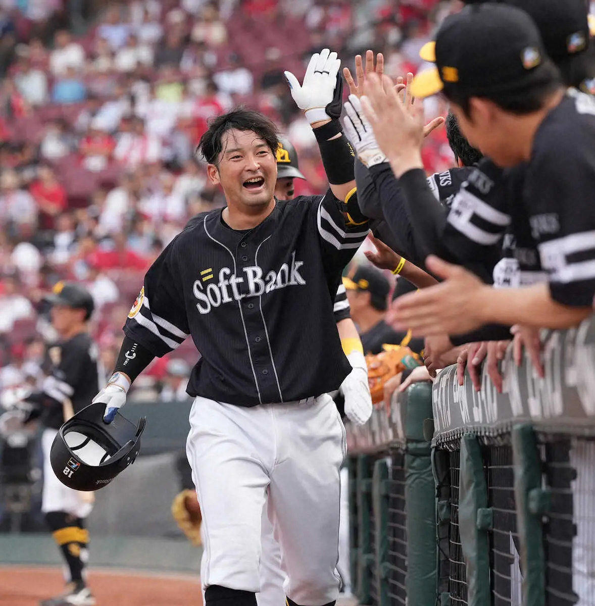 カンニング竹山とひぐち君のソフトバンク応援YouTube「鷹BAKA軍団」に、ソフトバンク・川瀬晃内野手(27)が出演。プロから見たプロは誰かと聞かれ、12年目・嶺井博希捕手(34)の名前を挙げた。