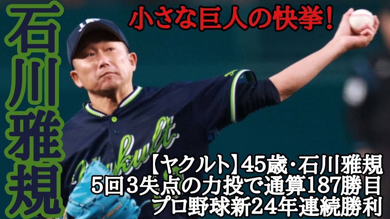 石川雅規 【ヤクルト】45歳・石川雅規、5回3失点の力投で通算187勝目 プロ野球新24年連続勝利 毎日投稿!スポーツ速報!