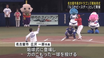 また、名古屋市の広沢一郎市長が始球式に登場し、力のこもった一球を投げました。