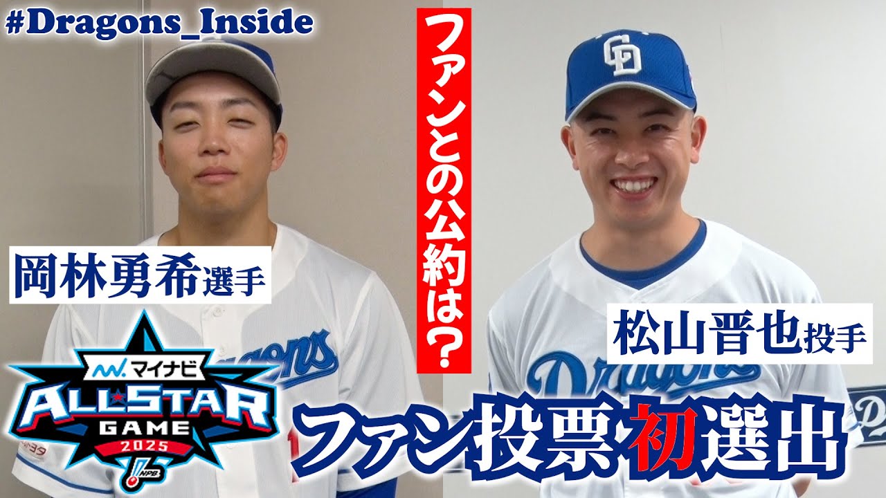 「ファン投票選出は公式YouTubeのおかげ🎉」 #岡林勇希 選手 #松山晋也 投手の喜びの声をお届け!ファンとの公約も #Dragons_Inside #マイナビオールスターゲーム2025