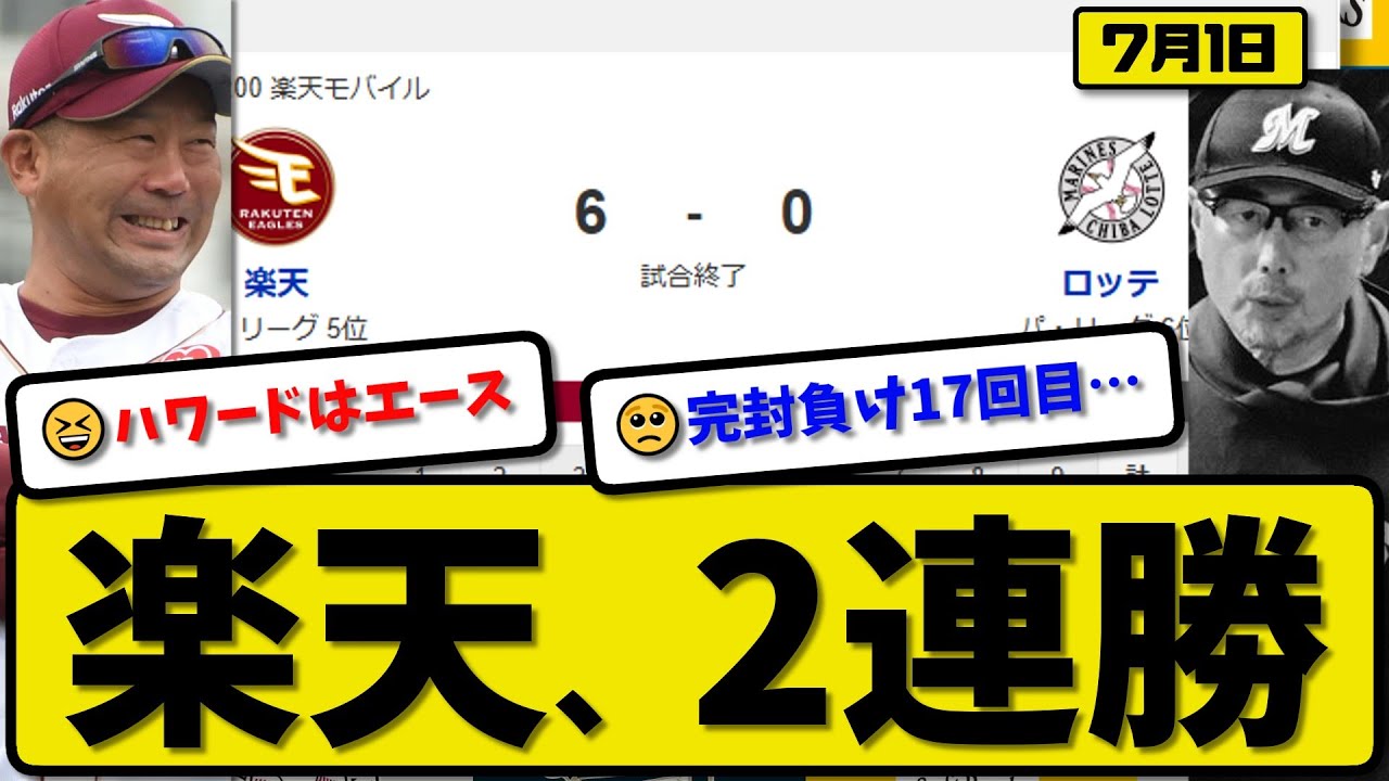 【パ5位vs6位】楽天イーグルスがロッテマリーンズに6-0で勝利…7月1日完封勝ちで2連勝…先発ハワード6回無失点…小郷&小深田&中島&渡邊が活躍【最新・反応集・なんJ・2ch】プロ野球