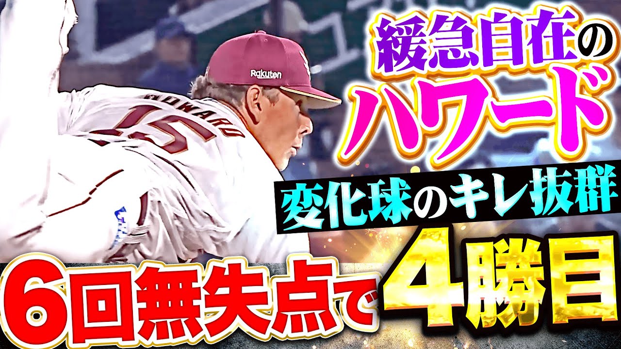 東北楽天・ハワードは初回、先頭から2者連続三振を奪うなど3者凡退の抜群の立ち上がり。以降もキレキレの多彩な変化球を駆使しアウトを重ねる。5回には初安打を許すも、後続を断ち切り抜ける。6回2安打無失点で今季4勝目を手にした!!