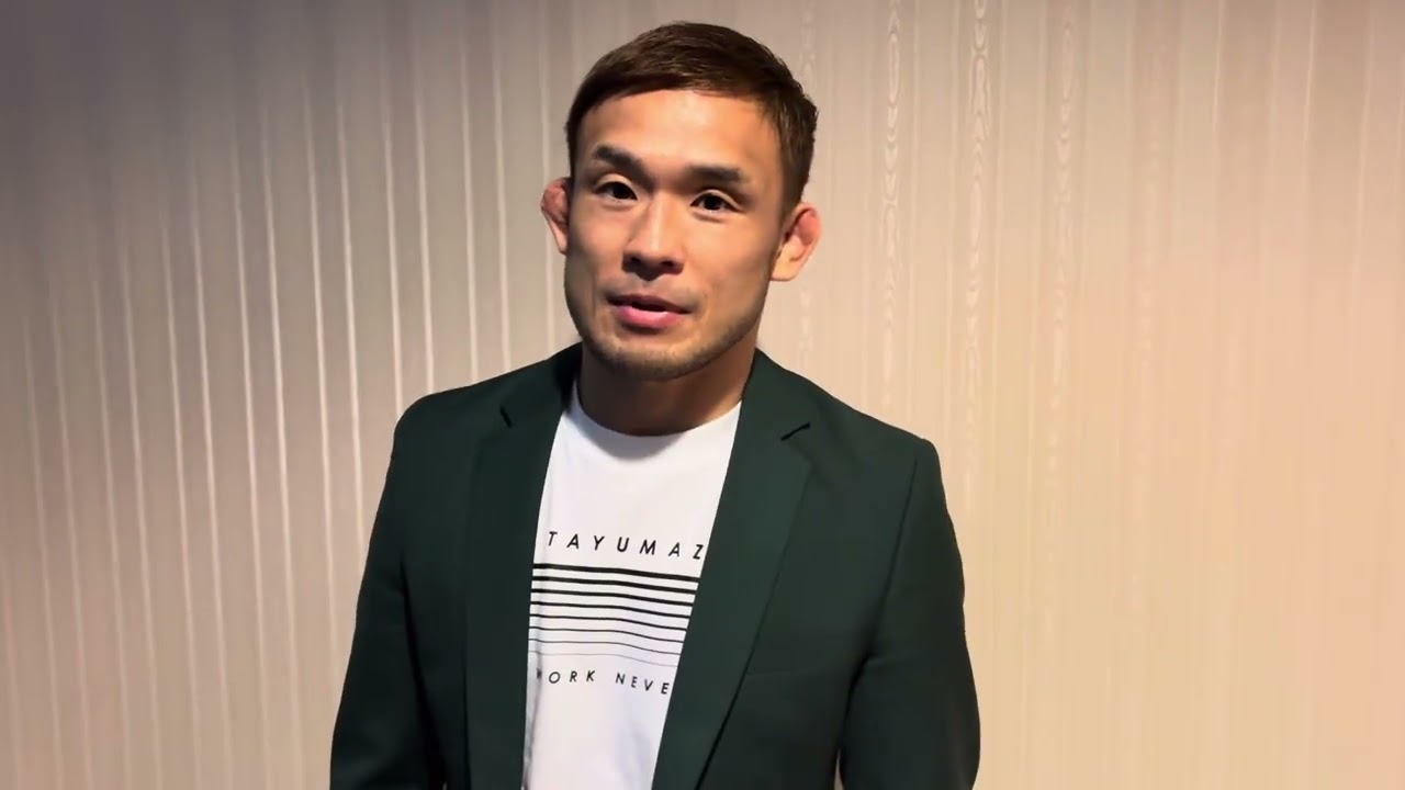 俺のこと言 ま強い選手なんでこれ 相手に不足なしって感じですね 元ファイトですね そうですね新龍選手にも勝ってるんでかなり強い選手すね 他の団体でもタイトルを取ってる選手ですね そうですブリーブFC バンタム級とかでも戦ってる選手なんでフィジカルもすごい強くて なかなか簡単にはいかない相手なんですけど だからこそ勝ちたいですね ま本当に 1 回戦からもういきなり決勝戦みたいなカードですよね実際これも まあそう言われてますねはいま僕も僕の中でもそんな感じで思ってますはい 優勝者がベルトを取りますはい どうですか?絶対取ります 雷人のベルト幕っていうのが 本当に今の僕の目標だしあの僕の今の夢なんであの 絶対に優勝してベルトをこの腰に 巻きます こちゃんファンにみんなにベルトを持った姿で そうですね見せたいですね見せたいです必ず よしくお願いしますます までも本当に補生率めちゃくちゃ強いんであとまちょうどあと今日 7月1日で4週間すか